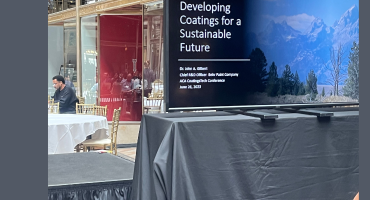 Dr. John A. Gilbert, chief research and development officer at Behr Process Corporation, delivered the keynote address at the CoatingsTech Conference. His presentation was titled “Developing Coatings for a Sustainable Future.”