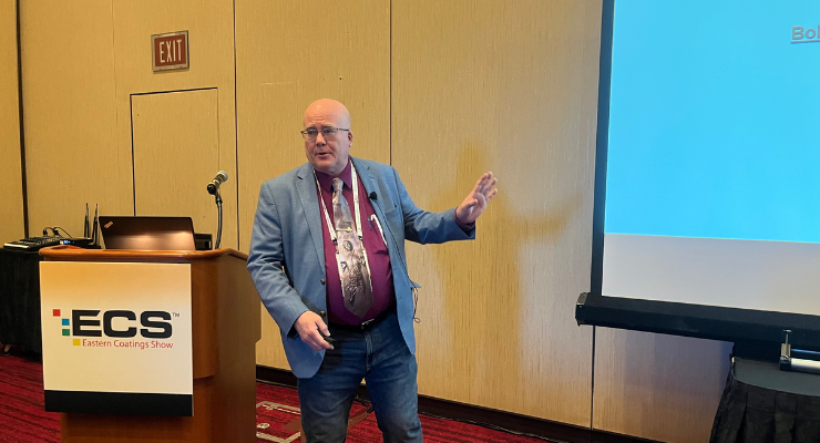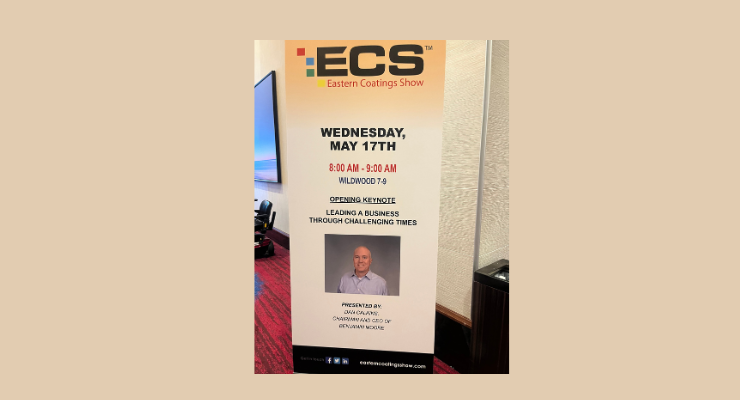 Hosted by the Philadelphia Society for Coatings Technology, the New England Society for Coatings Technology and the Metropolitan New York Coatings Association, the Eastern Coatings Show offers educational and technical presentations to create an understanding of the theory, science, manufacturing and marketing of coatings. Held every other year, this year’s Eastern Coatings Show was May 16-18 at Harrah’s in Atlantic City, NJ. The show began with a poolside welcome reception, where attendees and exhibitors had the opportunity to network in a relaxed setting. The show commenced with a keynote presentation from Dan Calkins, chairman & CEO of Benjamin Moore. His presentation, “Leading a Business Through Challenging Times,” focused on the measures his company took to ensure employee safety, as well as growing the company during the COVID-19 pandemic.