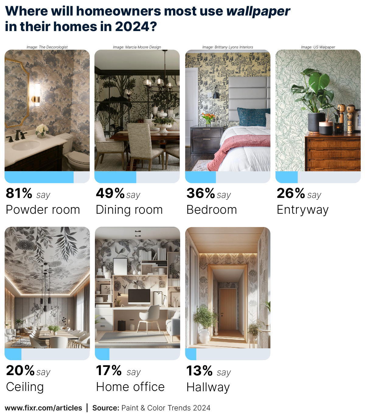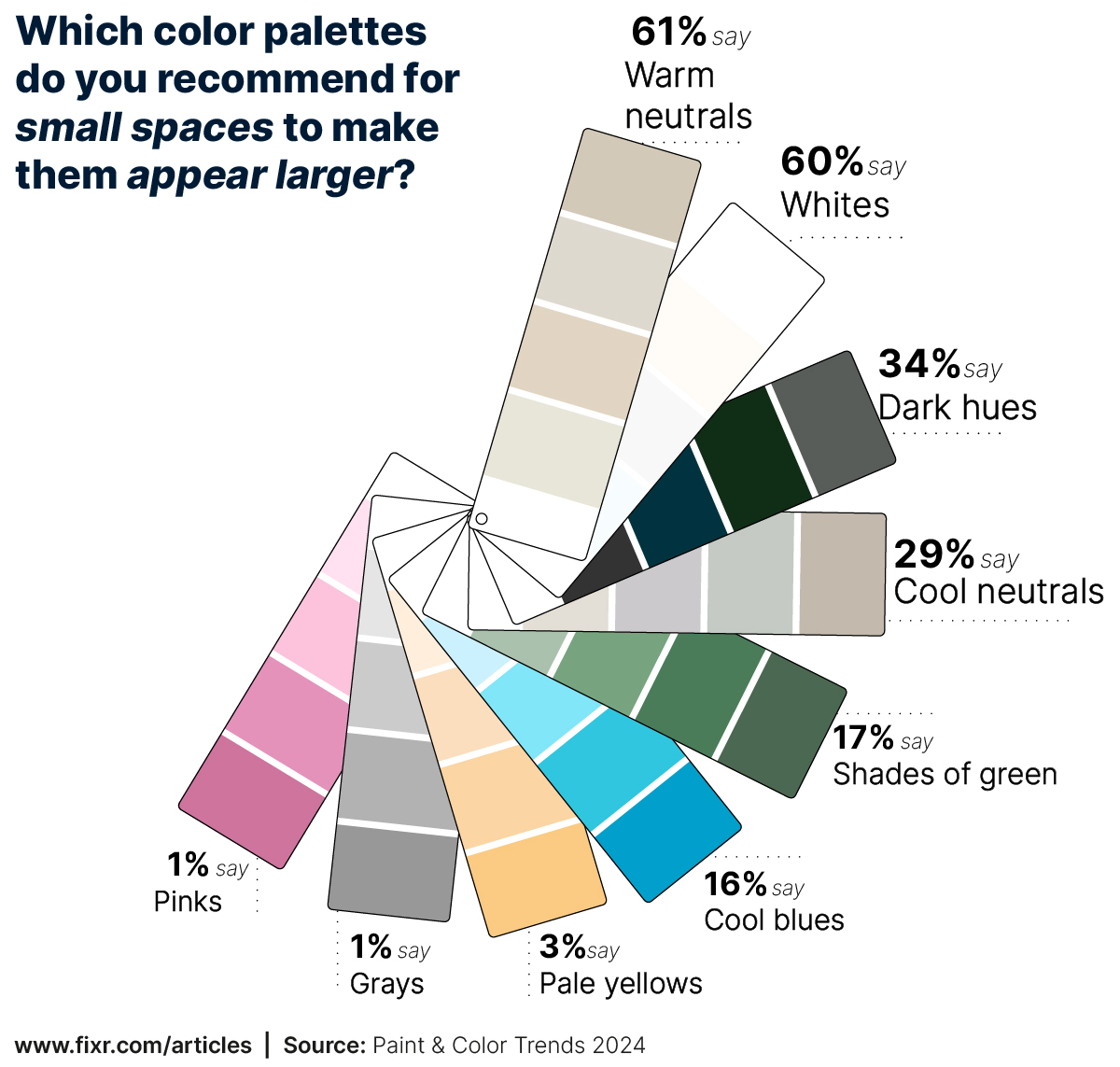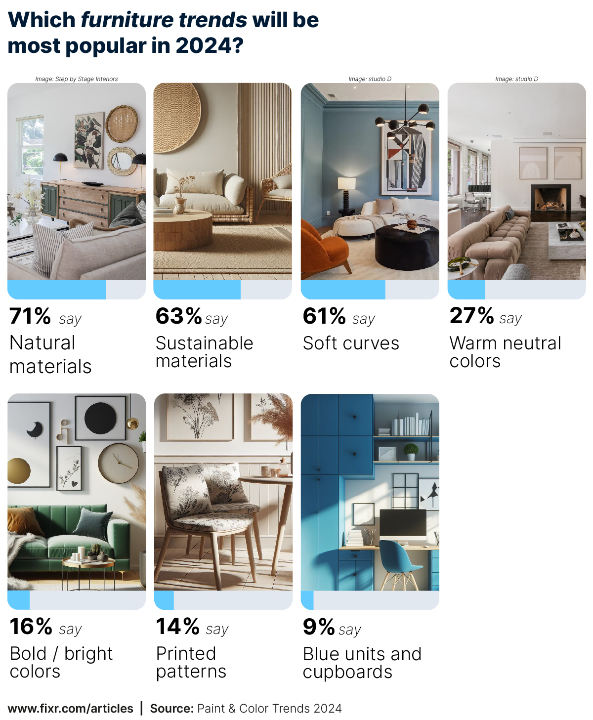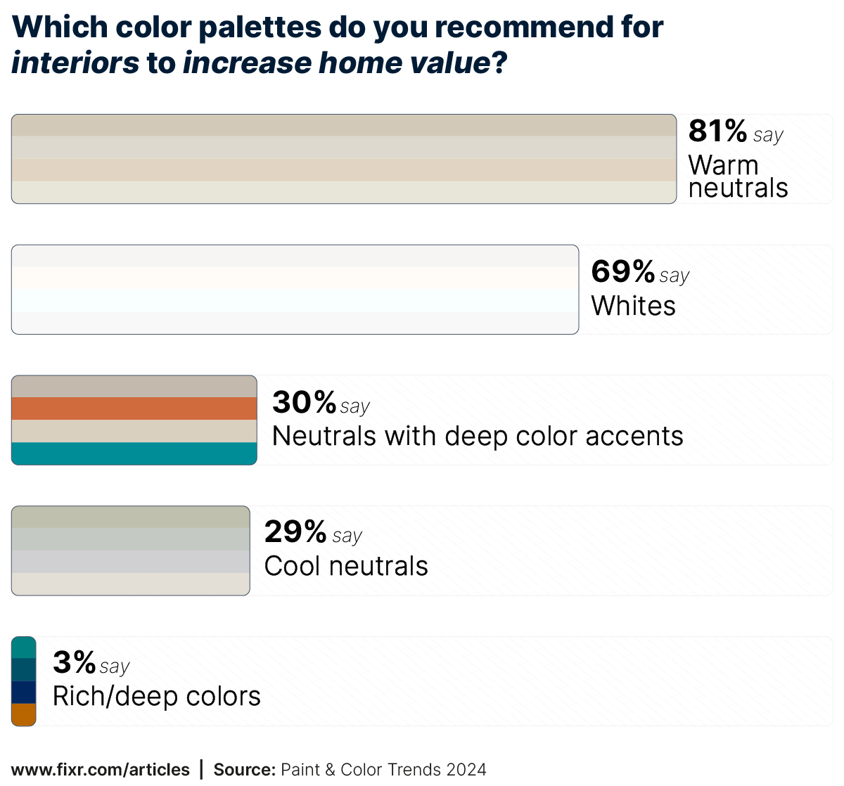 The 2024 Paint and Color Trends Report by Fixr.com highlights a move towards warm neutrals, greens, and blues.