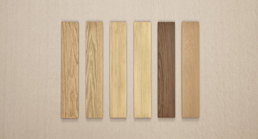 Minwax® Water-Based Semi-Transparent in Raffia, shown on multiple wood species to demonstrate color variation.